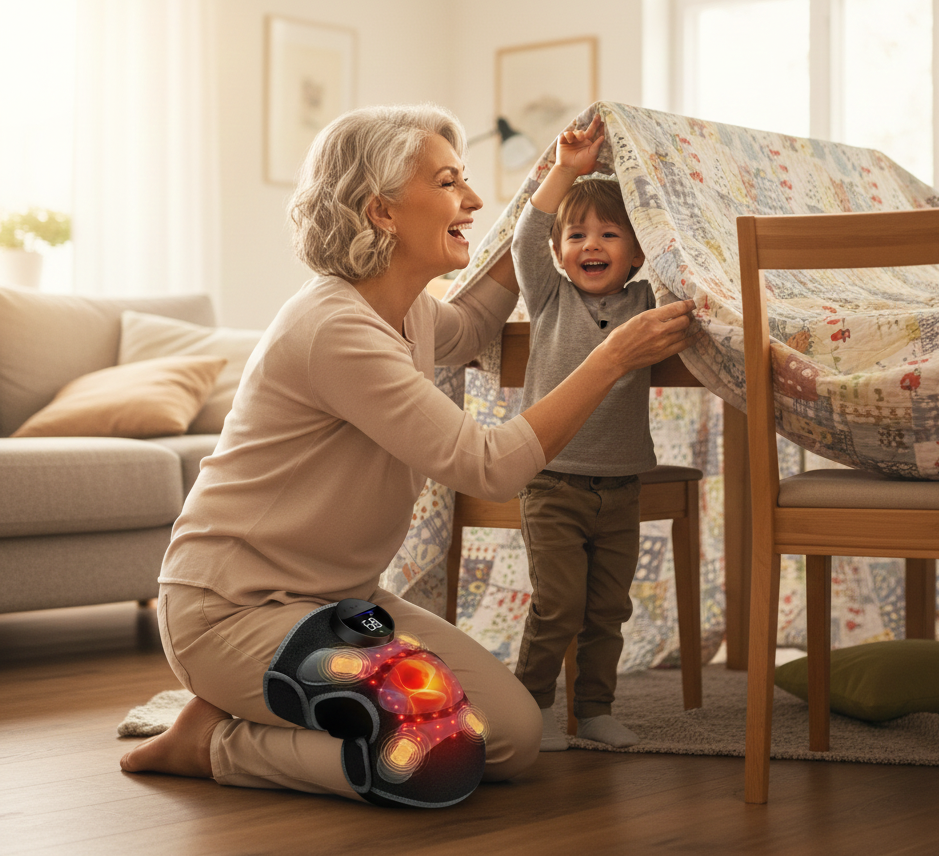 Keep up with the ones you love. Our smart knee massager combines soothing heat and vibration to relieve stiffness, helping you get back down on the floor to build memories.